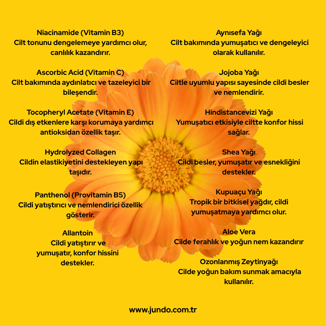 Allantoin: Cilt yüzeyinin pürüzsüz görünümünü destekleyen nazik bir içeriktir.